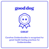 "Lucky" Goose is a Standard F1b Goldendoodle from Layla and Chaco's retirement litter. We plan to add Goose to our breeding program in the Summer of 2024 for stud service. He's been Embark tested (clear) and is awaiting his OFA certifications after he turns 2 years old. Goose has an energetic personality and loves to give "doodle hugs". His coat traits are fully furnished (FF - mustache, beard, and eyebrows), and he has a wavy coat (+/-). He stands 25" tall at his shoulders and weighs 65 pounds with a muscular build.